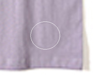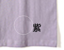 与“污点修复画笔工具”不同,“修复画笔工具”可以多次选择不同的源区域,直到把需要修复范围完美覆盖为止。例如:选择的“浅”字源区域与“紫”字所在的位置纹理不匹配(如图3-41所示),则重新选择匹配的源区域,按Alt按键,单击“紫”字附近取样,再对“紫”字位置覆盖单击,如图3-42所示。修复完毕的“纯色T恤3”素材,如图3-43所示。