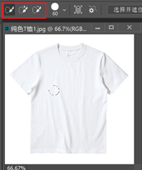 图3-16 快速选择工具 图3-17 单击选择T恤主体