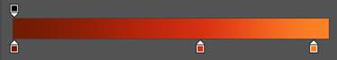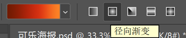 3、使用“渐变工具”,分别取色“#701b03”、“#d53212”和“#fb8025”,调整三种颜色渐变的比例,如图6-26所示。“渐变工具”属性栏选择渐变模式为“径向渐变”,如图6-27所示。点击“背景”图层,将鼠标从可乐瓶瓶口开始,往左下方拉(如图6-28所示),得到渐变背景颜色。