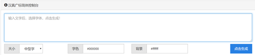 3、在控制台输入“开怀畅饮”(如图6-48所示),调整字体大小为大型字,字色是白色“#000000”,背景为透明背景“#ffffff”,点击生成,得到“汉真广标”字体,如图6-49所示,右击另存为“文字”.png格式。
