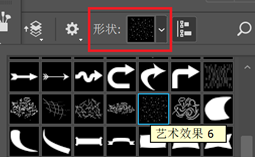1、制作水珠。在Photoshop里打开“可乐”素材图,选择“自定形状工具”(如图6-14所示),属性栏“形状”处,点击下拉选项,找到“艺术效果6”,选定该自定形状,如图6-15所示。