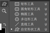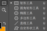 PS中形状工具,如图6-52所示。包括矩形工具、圆角矩形工具、椭圆工具、多边形工具、直线工具和自定形状工具。