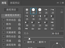 4、使用“画笔工具”,切换画笔面板或者使用快捷键F5调出画笔面板,如图6-29和6-30所示。