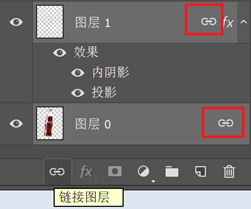 “链接图层”按键,链接的两个图层在任一图层操作,都可同时应用于这两个图层。同时选中链接的图层,再单击一次“链接图层”按键,即可分开捆绑,图层分别独立操作。把这两个图层拖拽到新建的“可乐海报”里,调整大小和位置,如图6-25所示。