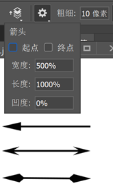 (1)宽度,箭头宽度和线段宽度的比值,可输入10%~1000%之间的数值。