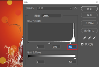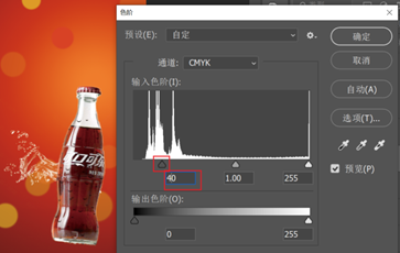 2、按快捷键Ctrl+L,调整色阶,如图6-38所示。调整“水素材1”的背景颜色完全与“可乐海报”背景融合。