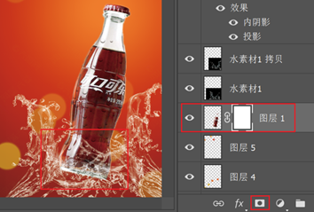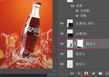 4、选择“图层1”可乐瓶图层点击“添加蒙版”