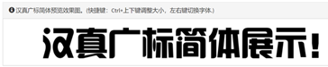 2、选择“汉真广标”字体,点击“查看”(如图6-46所示),展示文字效果图。