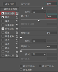 图6-31 画笔笔尖形状 图6-32 画笔形状动态
