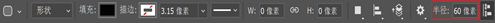 2、圆角矩形工具,如图6-58所示。该工具绘制具有平滑边缘的矩形。使用方法和矩形工具相同。按Shift键拖动,也可得到一个正方的圆角矩形。在圆角矩形工具半径处输入不同半径像素,圆角会有不同的形状,半径数值越大,圆角矩形的边缘越平滑,如图6-59所示。圆角矩形半径分别为0像素、20像素、40像素、60像素。