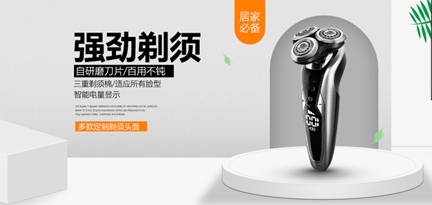 2、主标题文字设置的前提,是商品文案想对消费者表达的主体思想,品牌需要传达的主要内容。一般会把海报中商品名称、商品优势特点、促销活动名称、店铺名称之类的重要信息作为主标题,这是一个剃须刀的海报,应该也要把剃须刀优势特点展现出来,作为主标题会更好,“全身水洗顺丰包邮”这几个字作为副标题,把二者的关系调整一下,确定好主副标题以后,适当的调整文字的大小和结构关系。