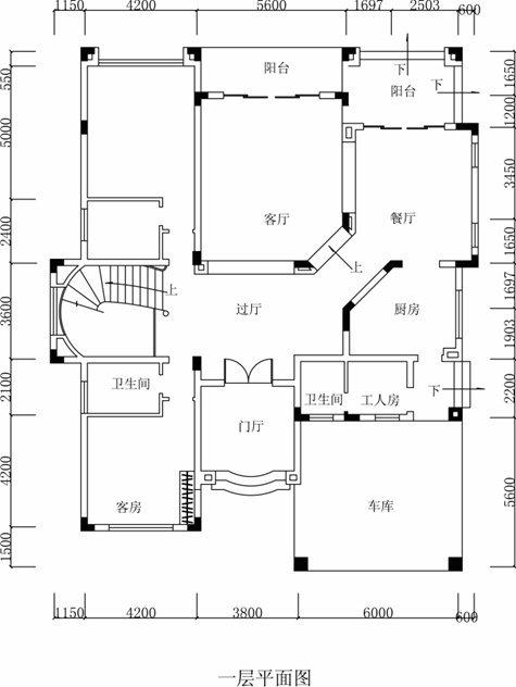 •某别墅平面如图,请完成其室内设计,该别墅业主全家4人,含业主夫妇,小孩一位,老人一位,另有其保姆一位,业主职业由学生自己拟定,必须设计客厅、餐厅、厨房、主卧室、老人房、儿童房和书房。其他空间由设计者按空间情况和业主的职业,爱好决定设计风格不限。