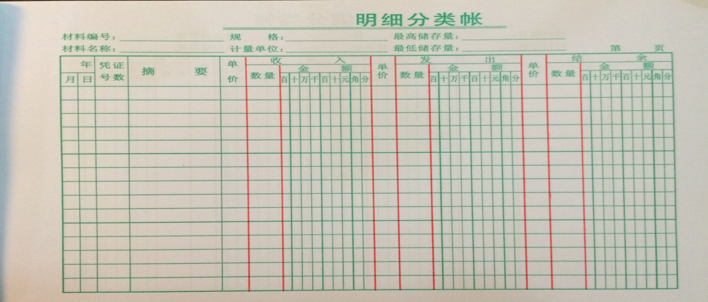 账簿的借方、贷方和余额三个栏目内,都分设数量、单价和金额三小栏。适用于物资明细账,如:原材料、库存商品、包装物等。