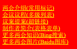 使用无序列表显示两会代表(至少5位) 和委员(至少5位);