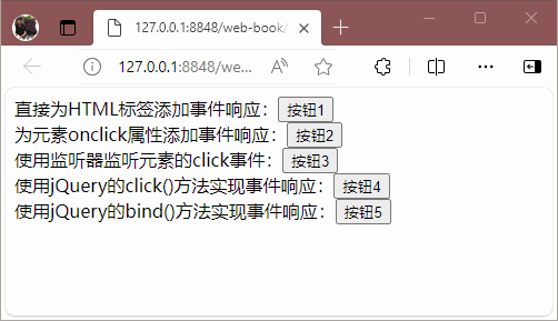 在网页中添加5个按钮,并为这些按钮添加单击事件响应。