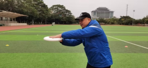 握法:大拇指紧扣飞盘的正面凸起纹路上并向下压,其余四指则扣紧飞盘的边缘,并要求食指顺着盘缘第二关节刚好与飞盘的边缘卡在一起,另三指置于盘沟,握盘不要太紧。