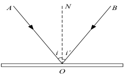 光从一种介质射入另一种介质的表面时,有部分光返回原介质的传播现象叫做光的反射.如图所示.其中光线 OB 称为反射光线,i´ 为反射角.