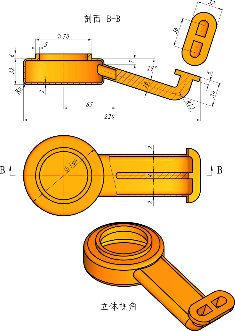 【补充训练图纸】完成下图所示零件的三维建模。