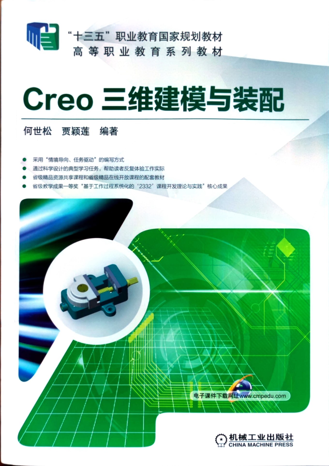 1.“十三五”职业教育国家规划教材《Creo三维建模与装配》,书号:978-7-111-58274-8,作者:何世松、贾颖莲,机械工业出版社2018年出版;