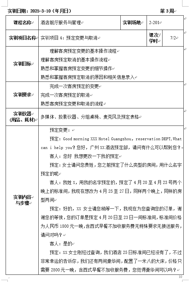 10.2 1+X前厅运营管理(中级)实操考试