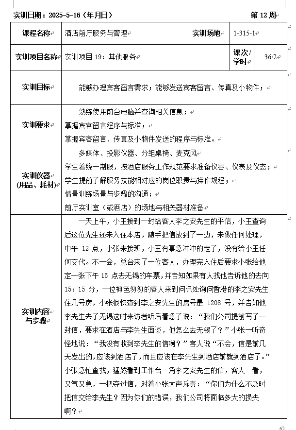 • 10.2 1+X前厅运营管理(中级)实操考试