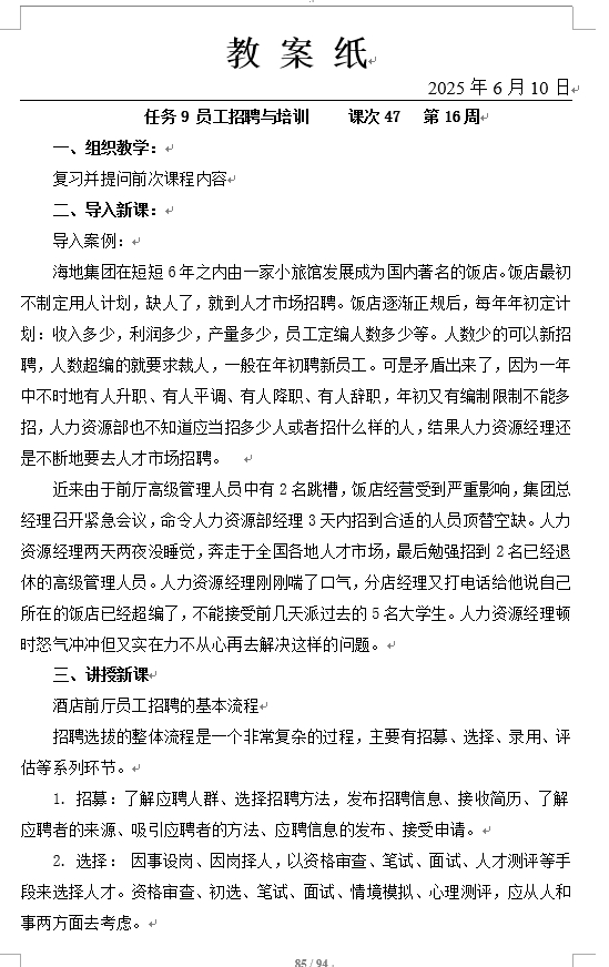 • 9.1 任务一  员工招聘