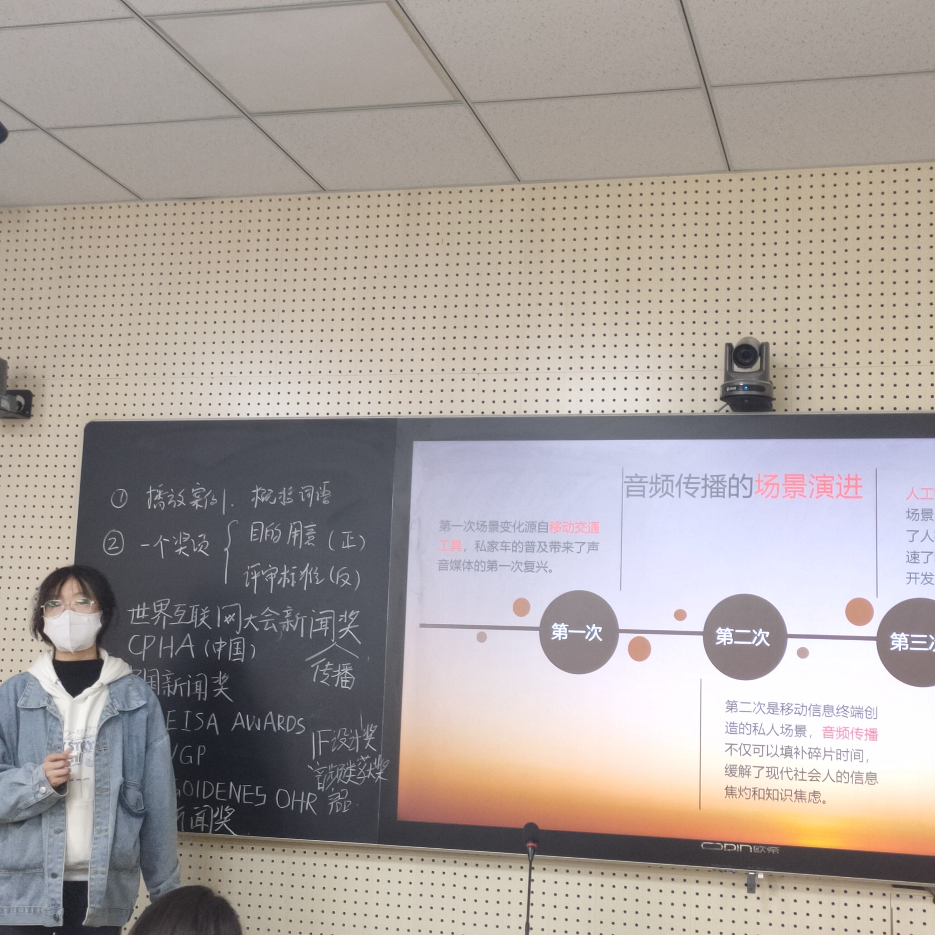 今天主要讲的内容是音频新闻的传播特征。用耳朵阅读新闻即新音频的学习,艾瑞咨询分析报告《2018年睡前音频收听场景研究报告》来学习音频相较于视频的视听结合的优势,以及同学们总结的2018年以后音频的发展的三大变化:1主题变动2音频增多3特色显著。接着学习了一些案例如山西日报的《听说》、厦门日报微信公众号也于4月21日起推出了《夜读》音频栏目,每周定期推出“闽南夜话”“诗歌之夜”“英文朗读”等