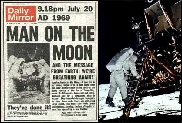 8. The Space Race, begun by the Soviets in 1957, was highlighted by Alan Shepard, the first American in space in 1961. Neil Armstrong and Buzz Aldrin, in Apollo XI, were the first men to walk on the moon in 1969. The surgeon general determined that smoking was a health hazard, and in 1965 required cigarette manufacturers to place warnings on all packages and in all advertisements. Dr. Denton Cooley implanted the first artificial heart in a human, and it kept the patient alive for three days until a human heart could be transplanted.