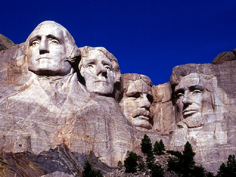 Directions: When we recollect the history of America, some names cannot be forgotten. Please identify the faces of the most admired American presidents carved by Gutzon Borglum into the southeast face of Mount Rushmore in South Dakota. Can you briefly retell their contributions to the United States?