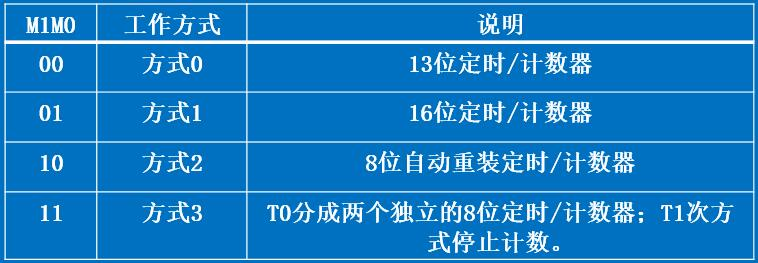 工作方式寄存器TMOD用于设置定时/计数器的工作方式,低四位用于T0,高四位用于T1。