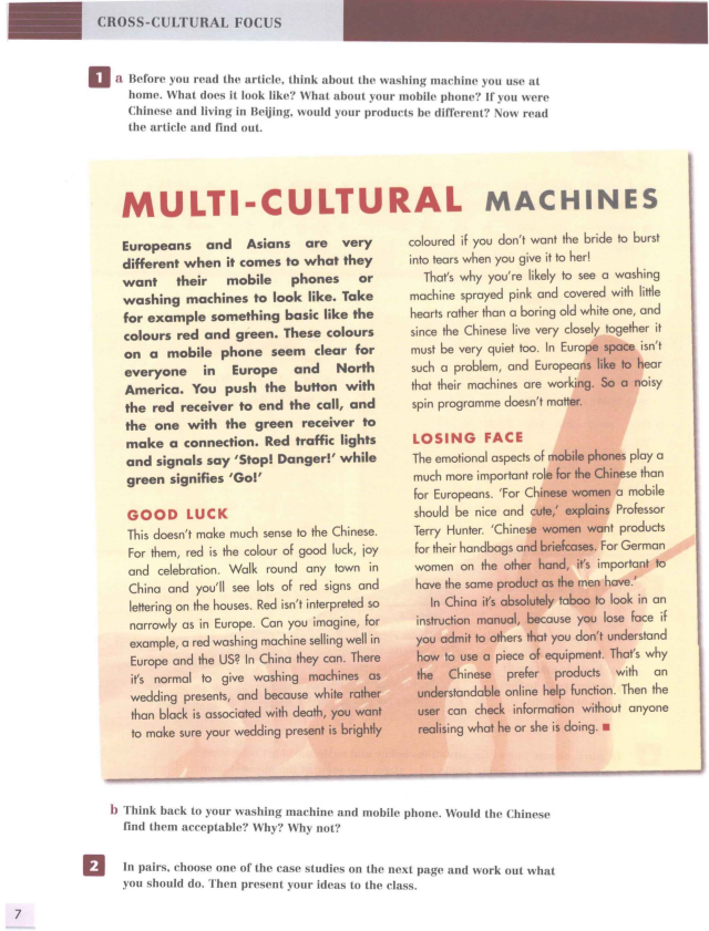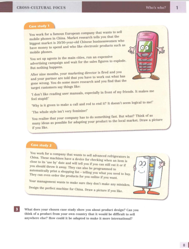 Time to think: 1) After reading the two case studies, what can you do to make either the mobile phone or the fridge a better one with typical Chinese elements? 2) Do you agree with the author?