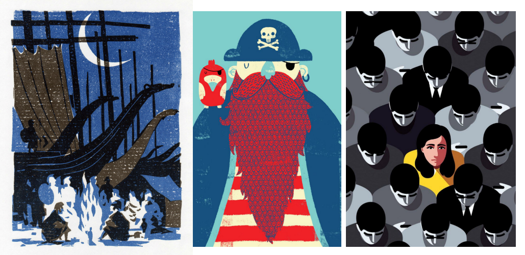 线条都非常简单,毛笔、剪纸、字母、乐符都是常用的表现手法。