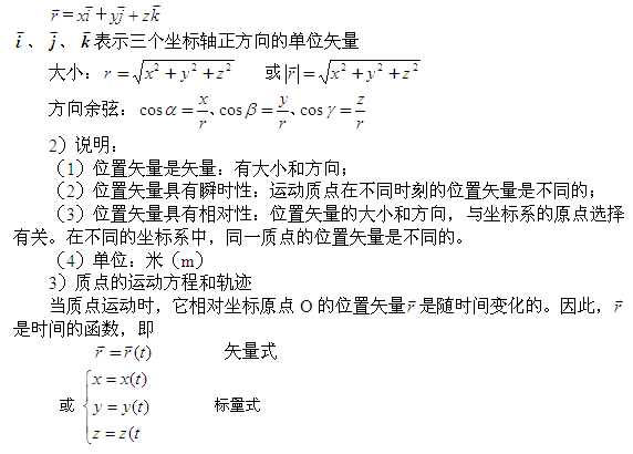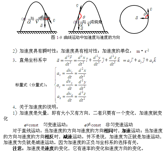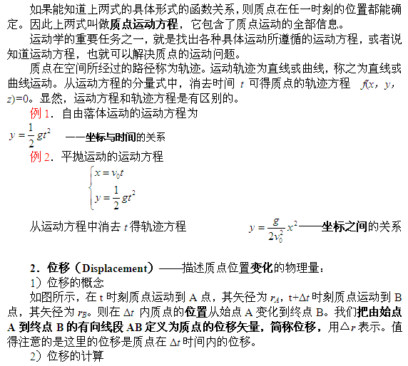 (1) 掌握:位矢、位移、速度、加速度等物理量的定义及表达式,能够从已知的运动方程求