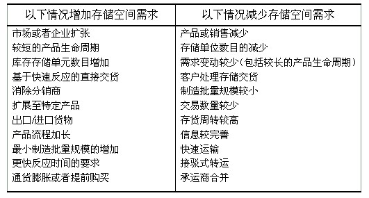表3-1列出影响存储空间要求的一些因素。另外,也表示出了一些可以减少物品所需的存储空间的建议。