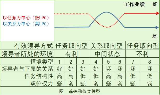 (2)改变情境以适应领导者;(即重新建构任务和领导者的职位权力)。