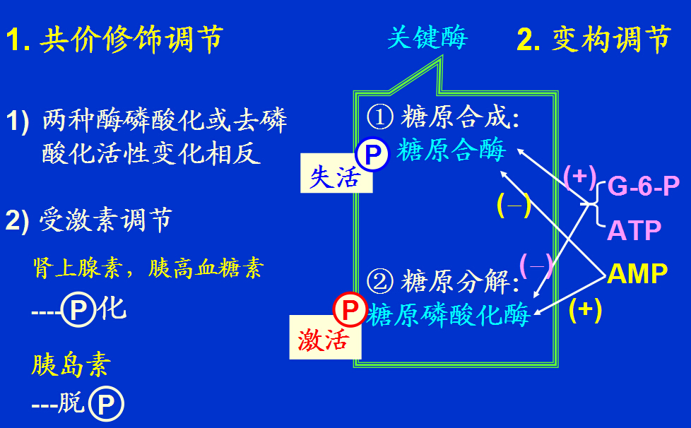 糖原合成酶和磷酸化酶分别是糖原合成与分解代谢中的限速酶,它们均受到变构与共价修饰两重调节。