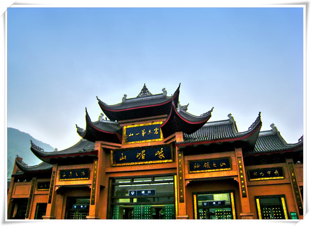 (3)明清风格。寺观继承了前代理性精神和浪漫情调,按照建筑艺术特有的规律,最后形成中国建筑艺术成熟的典型风格:雍容大方,严谨典丽,机理清晰,而又富于人趣味。如峨眉山的寺庙依地势而建,自然成景。布局不拘一格,高下自由,有极丰富的空间组合。同时,又注意与山形水态、植被环境密切结合,一扫传统寺庙的呆板定式。再如九华山的寺庙大量采用当地民居形式,乱石墙、小青瓦、少量的粉壁,建筑装修极为简单,不施彩绘,造型不拘定式。九华山寺庙开创了一种清新、简朴、自由、轻快地寺庙建筑格调,与藏传佛寺的神秘、汉传佛寺的庄重皆不相同。