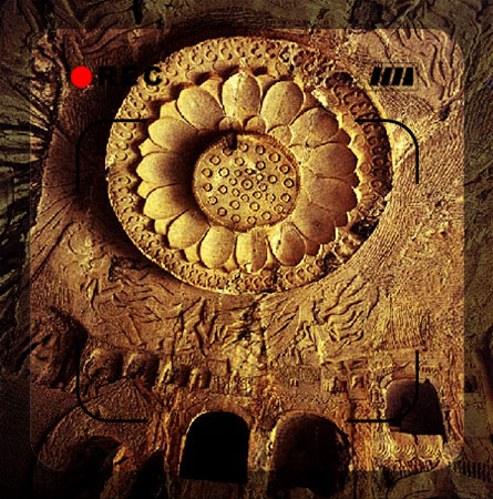 在石窟的中心雕凿成塔柱或其他形式的柱子,柱子的四周和四壁雕刻、雕塑和描绘佛像、佛传故事、飞天、动植物及各种花纹。云冈石窟中1、2、21号窟就是这种类型。