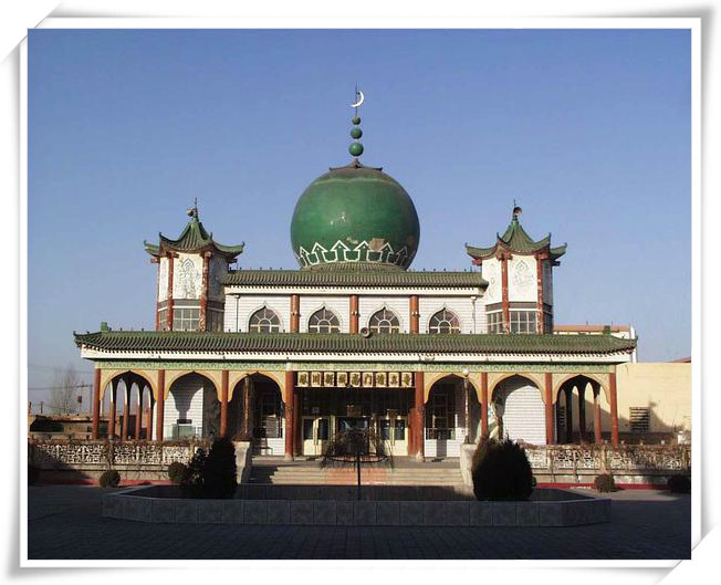 (8)维吾尔族风格,集中在新疆维吾尔族居住区,风格是外部朴素单调,内部灵活精致。例如艾提尕尔清真寺坐落于新疆维吾尔自治区喀什市,不仅是新疆规模最大的清真寺,也是全国规模最大的清真寺之一。这是一个有着浓郁民族风格和宗教色彩的伊斯兰教古建筑群,坐西朝东,由寺门塔楼、庭园、经堂和礼拜殿四大部分组成。