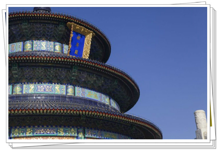 祈年殿也广泛使用数字,寓意非常丰富。祈年殿内金龙藻井下的中央四柱叫通天柱,代表了一年的四季;中层十二根金柱,代表十二个月;外层十二根檐柱,代表十二时辰;中外层相加二十四根大柱代表二十四节气;三层相加二十八根,代表二十八星宿。这些数字,表达了天子祈求五谷丰登、风调雨顺、国泰民安的心理,这样是祈年殿的文化意义。