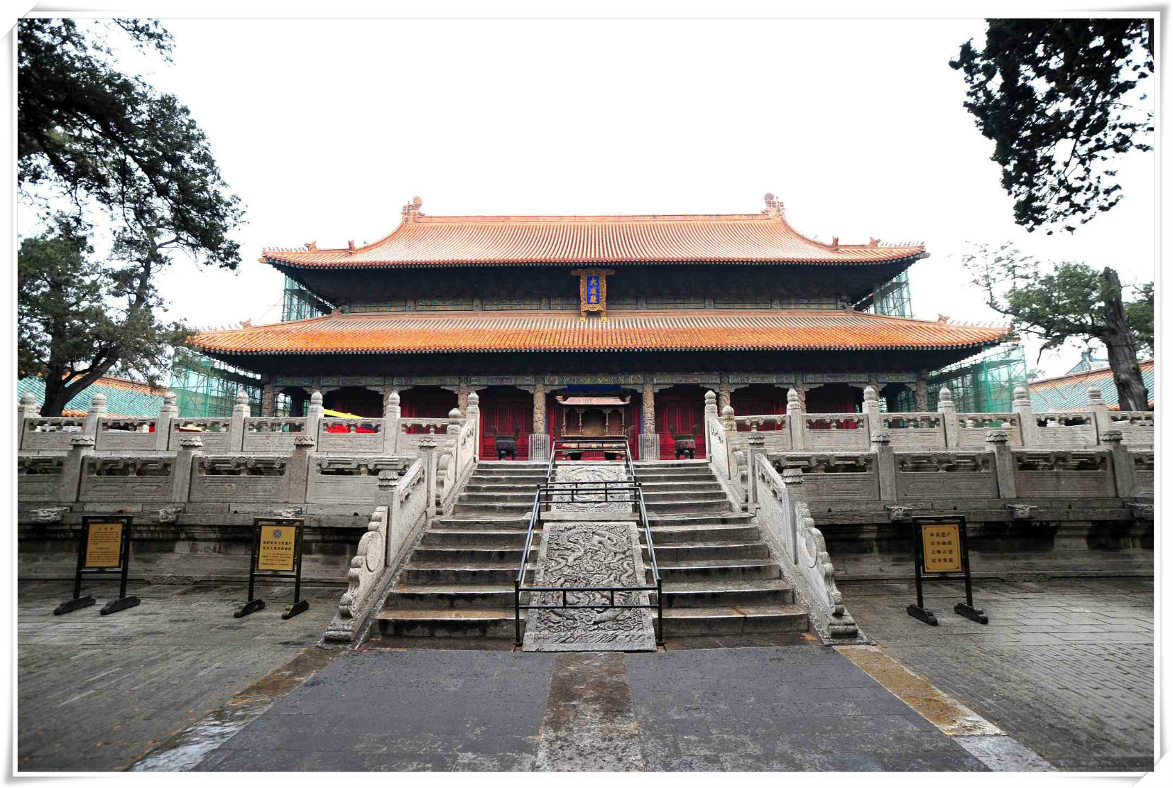 北京太庙位于北京天安门的广场东北侧,始建于明永乐十八年(1420年),占地200余亩,是明清两代皇帝祭奠祖先的家庙。太庙的主体建筑为三大殿,排列在中轴线上。前殿是三大殿中的主殿,是皇帝祭祖行礼的地方。大殿面阔11间,重檐庑殿屋顶,坐落在3层汉白玉石台基上。从规格来看,北京太庙与紫禁城前朝三大殿、长陵的祾恩殿、天坛的祈年殿规格相当,说明祭祀祖先是封建国家政治生活中的一件大事。如今,这里成为北京市的劳动人民文化宫。