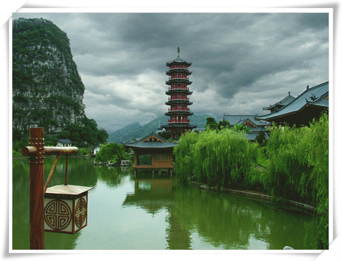 桂林的漓江山水是世界上规模最大、风景最优美的岩溶风景区。这里的山平地拔起,千姿百态;这里的水蜿蜒曲折,明洁如镜;山多有洞,洞幽景奇;洞中怪石鬼斧神工,琳琅满目,于是形成了“山清、水秀、洞奇、石美”的桂林“四绝”,而自古就有“桂林山水甲天下”的美称。桂林象鼻山位于桂林市东南漓江右岸,山因酷似一只大象站在江边伸鼻吸水,因此得名,是桂林的象征。