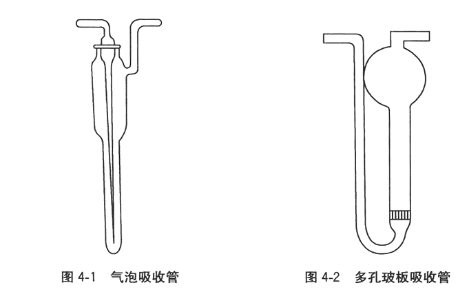 常用的吸收管气泡吸收管多孔玻板吸收管两种(图4-1和图4-2)气泡吸收管只适用于采集气态、蒸气态物质,有大小两型,大型气泡吸收管可盛5~10ml吸收液,采样气体流量一般为0.5L/min小型气泡吸收管可盛3m1吸收液,采样气体流量一般为0.3L/min通常将同样两支吸收管串联,保证被测物完全吸收。多孔玻板吸收管是U型吸收管,可用于采集烟雾状气溶胶物质。其粗管底部有一片玻砂烧结的滤板,可盛5~l0ml吸收液,采样气体流景一般为0.5L/min。