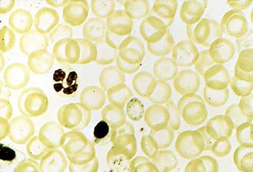 此外,铅对红细胞,特别是骨髓中幼稚红细胞具有较强的毒作用,形成点彩细胞增加。在铅作用下,骨髓幼稚红细胞可发生超微结构的改变,如核膜变薄,胞浆异常,高尔基体及线粒体肿胀,细胞成熟障碍等。线粒体中存在大量含铁胶粒,散在于胞浆,是铁失利用的结果。铅在细胞内可与蛋白质的巯基结合,干扰多种细胞酶类活性,例如铅可抑制细胞膜三磷酸腺苷酶,导致细胞内大量钾离子丧失,使红细胞表面物理特性发生改变,寿命缩短,脆性增加,导致溶血。