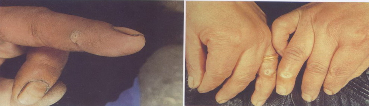 (2)口腔-牙龈炎 早期多有流涎、糜烂、溃疡、牙龈肿胀、酸痛、易出血;继而可发展为牙龈萎缩、牙齿松动,甚至脱落;口腔卫生不良者,可在龈缘出现蓝黑色汞线。