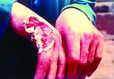 黄磷可致皮肤灼伤并经皮肤吸收引起肝脏损害。