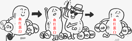 一氧化碳主要与红细胞的Hb结合,形成碳氧血红蛋白(HbCO),以致使红细胞失去携氧能力,从而组织细胞得不到足够的氧气。