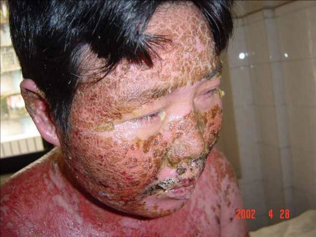 三氯乙烯中毒(发现早,治疗及时,比较轻微) 三氯乙烯中毒(严重病例)