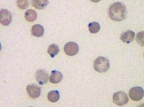 赫恩氏小体(Wright’s-Giemsa stain) 赫恩氏小体(New methylene blue stain)