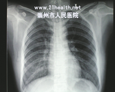 病员男性,自服克芜踪30-50ml入院,中毒后7天摄片右肺上下叶纤维化,以下叶为著(左)